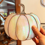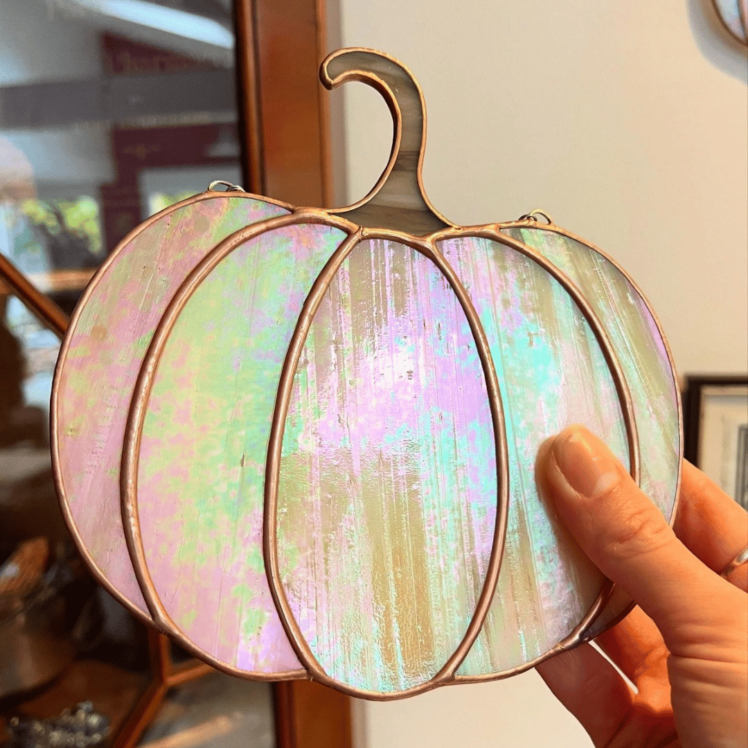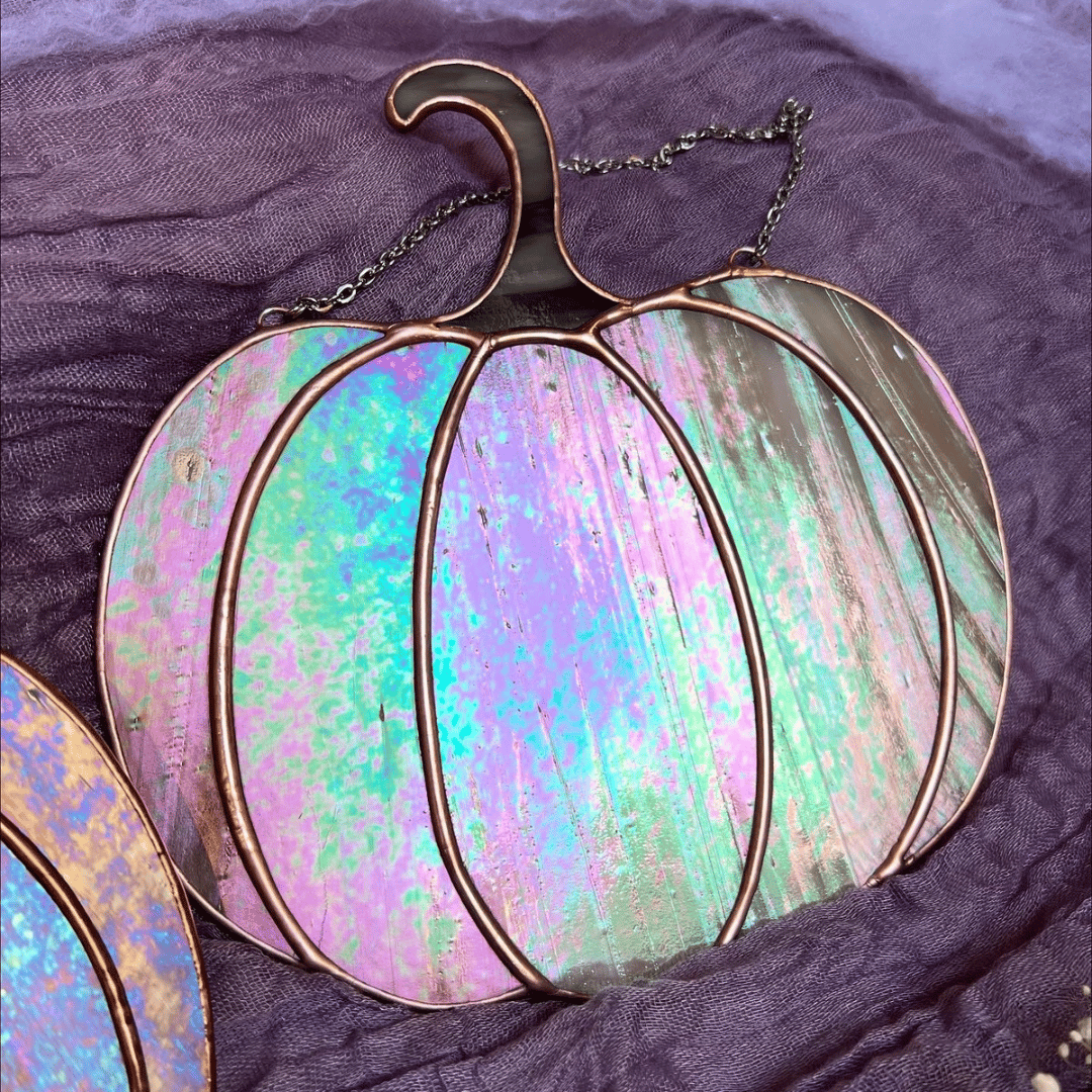 Citrouille ambre foncée irisée de reflets rose et vert presque solaire.