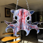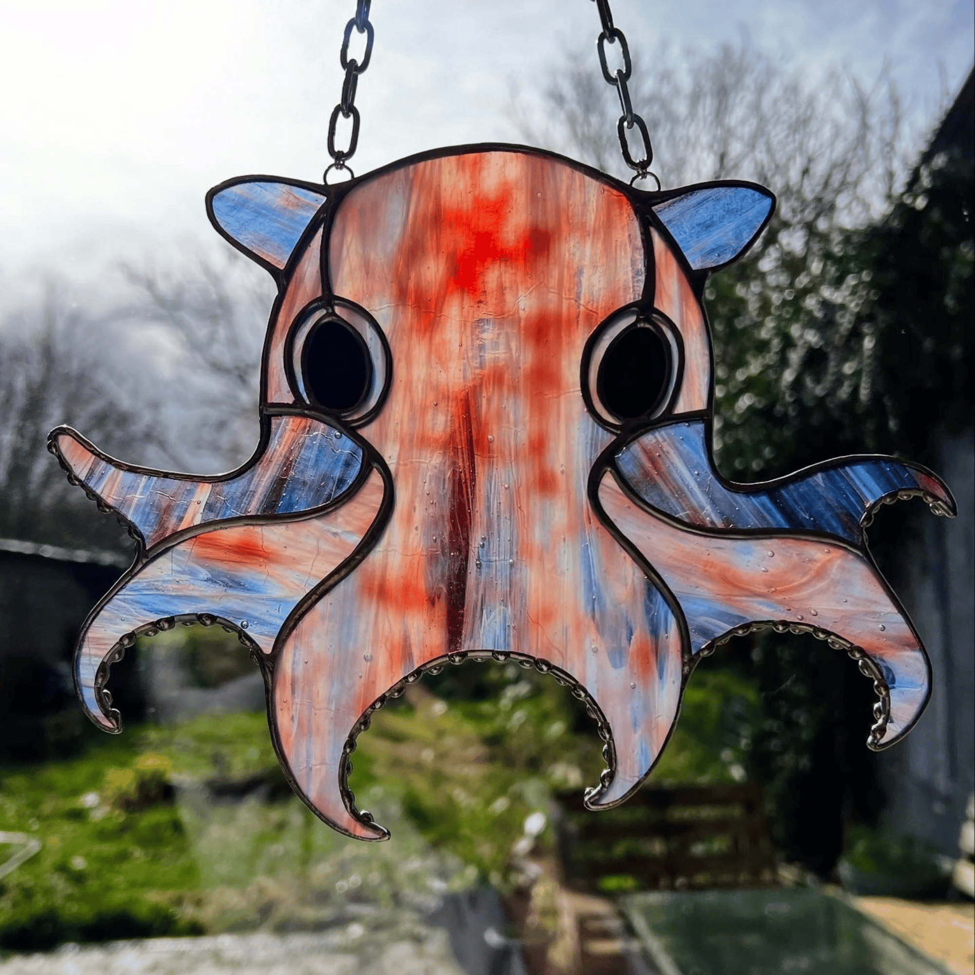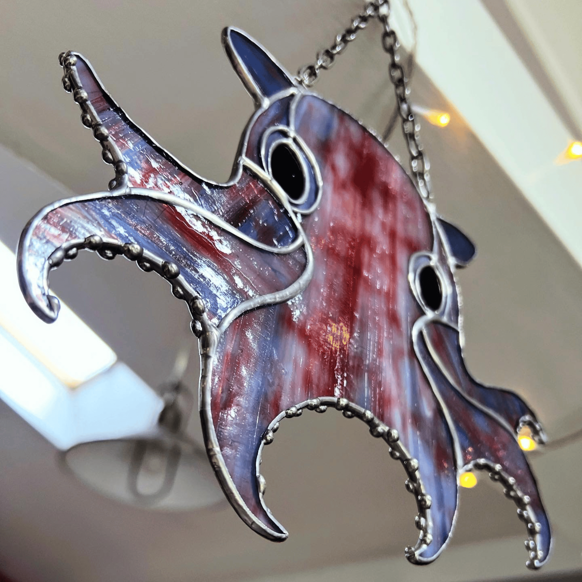 Pieuvre dumbo crée à partir d'un verre semi-opalescent couleur bleu et bordeaux.